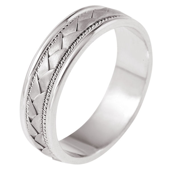 Palladium hand made comfort fit Wedding Band 7.0 mm wide. The center of the band has a handcrafted braid with a handmade rope on each side of the braid. The center of the ring has a brush finish and the edges are polished. Different finishes may be selected or specified.