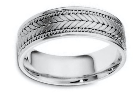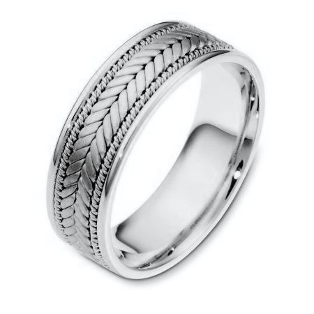 Palladium hand made comfort fit Wedding Band 7.0 mm wide. The center has a beautiful handmade braid design that has a brush finish. The edges are polished. Different finishes may be selected or specified.