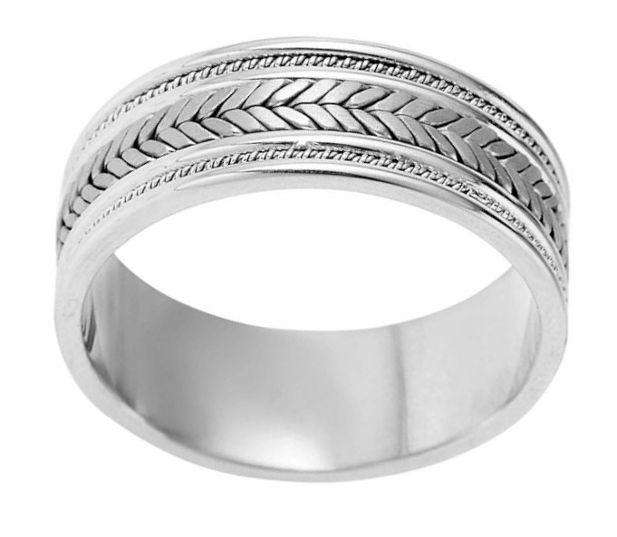 Palladium, hand made comfort fit Wedding Band 9.0 mm wide. The ring has a combination of beauitful handmade braids and ropes. The center has matte finish and the edges are polished. Different finishes may be selected or specified.