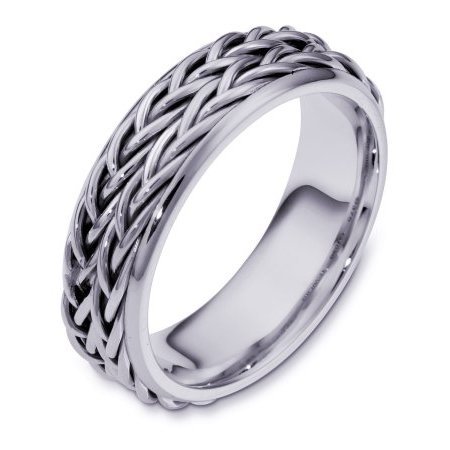 Palladium, hand made comfort fit Wedding Band 6.0 mm wide. The ring has two beautiful hand crafted braids in the center. The rest of the band is polished. Different finishes may be selected or specified.