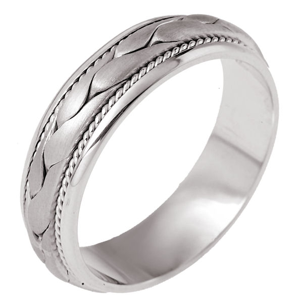 Platinum hand made comfort fit Wedding Band 6.5 mm wide. The ring has a hand crafted braid in the center with one hand made rope on each side of the braid. The center is brush finish and the rest is polished. Different finishes may be selected or specified.