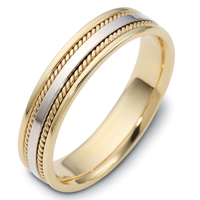 14 k two-tone hand made comfort fit, 5.0 mm wide wedding band.