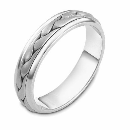Palladium, hand made, comfort fit, 5.0 mm wide wedding band. The ring has a handmade braid in the center with a brush finish. The edges are polished. Different finishes may be selected or specified.