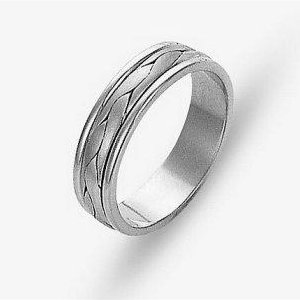 Platinum hand made comfort fit Wedding Band 5.0 mm wide. The ring has a handmade braid in the center with a brush finish. The edges are polished. Different finishes may be selected or specified.