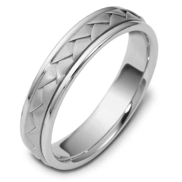 Platinum hand made comfort fit Wedding Band 5.0 mm wide. The ring has a handmade braid in the center with a brush finish. The edges are polished. Different finishes may be selected or specified.