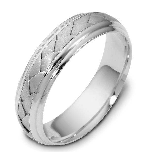 Platinum hand made comfort fit Wedding Band 5.5 mm wide. The ring has a handmade braid in the center with a brush finish. The edges are polished. Different finishes may be selected or specified.