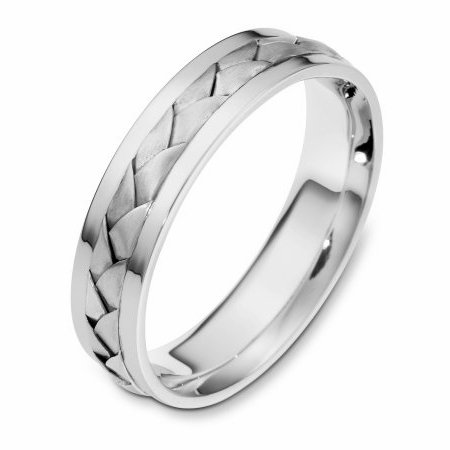Platinum hand made comfort fit Wedding Band 5.0 mm wide. The ring has a handmade braid in the center with a brush finish. The edges are polished. Different finishes may be selected or specified.