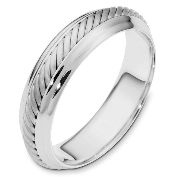 Platinum hand made comfort fit Wedding Band 5.5 mm wide. The ring has a hand made rope in the center with a brush finish. The edges are polished. Different finishes may be selected or specified.