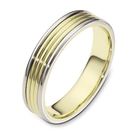 Two-Tone, hand made, comfort fit, 5.0 mm wide wedding band. It can be made with different color combinations. The whole ring is polished. Different finishes may be selected or specified.