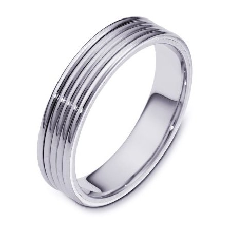 14K white gold, hand made, comfort fit, 5.0 mm wide wedding band. It can be made with different color combinations. The whole ring is polished. Different finishes may be selected or specified.