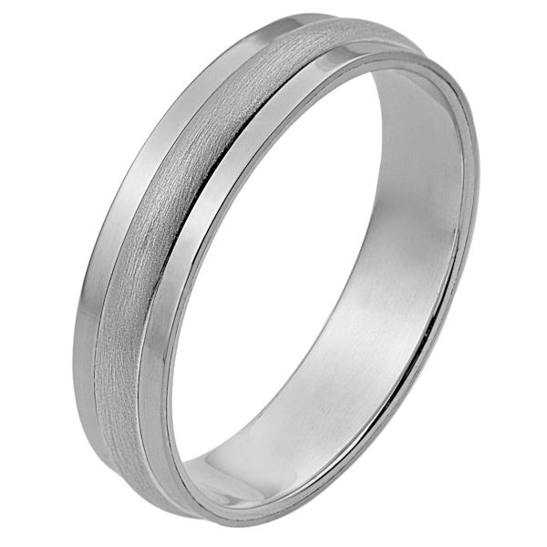 Platinum hand made comfort fit Wedding Band 5.0 mm wide. The center portion is matte finish and the edges are polished. Different finishes may be selected or specified.