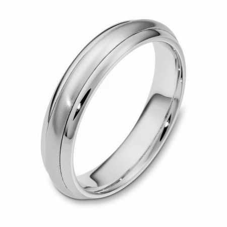 Platinum hand made comfort fit Wedding Band 5.0 mm wide. The center portion is matte finish and the edges are polished. Different finishes may be selected or specified.