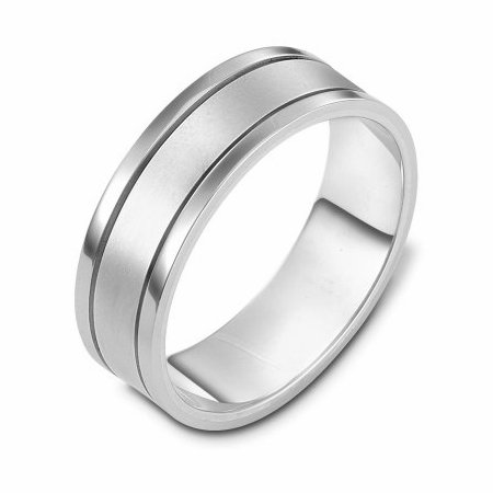 Platinum hand made comfort fit Wedding Band 7.0 mm wide. The center is a matte finish and the outer edges are polished. Different finishes may be selected or specified.