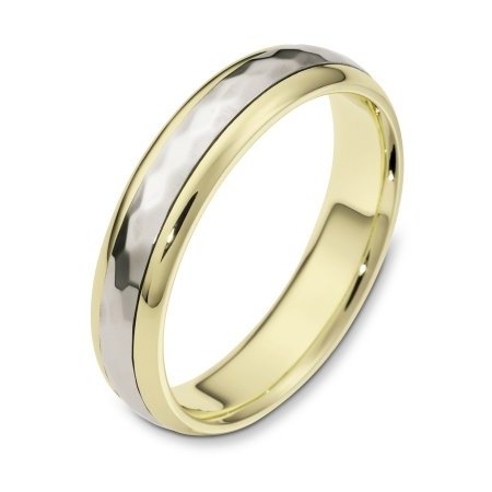 Platinum and 18 kt yellow gold, 5.0 mm Wide Comfort Center Rotating Hand Made Spinning Wedding Band. The center of the ring has a hammered pattern all around the band and spins. The whole ring is polished. Different finishes may be selected or specified.
