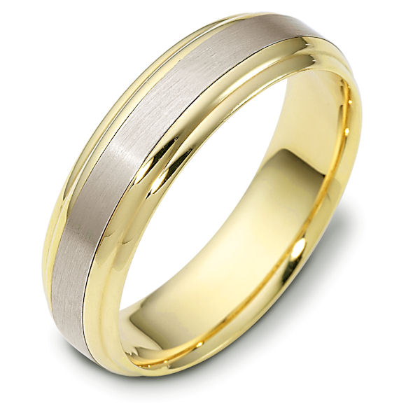 18 kt Gold Two-Tone 6.0 mm Wide Comfort Hand Made Wedding Band. The center of the ring is brushed and the rest is polished. Different finishes may be selected or specified.