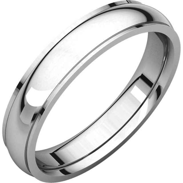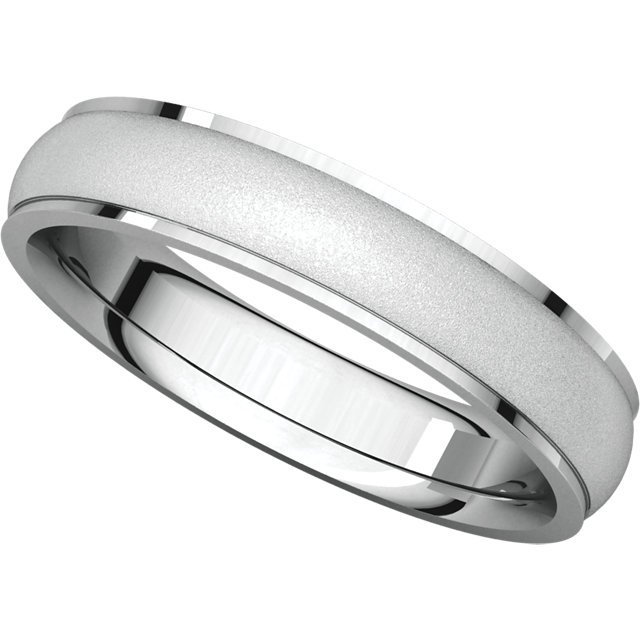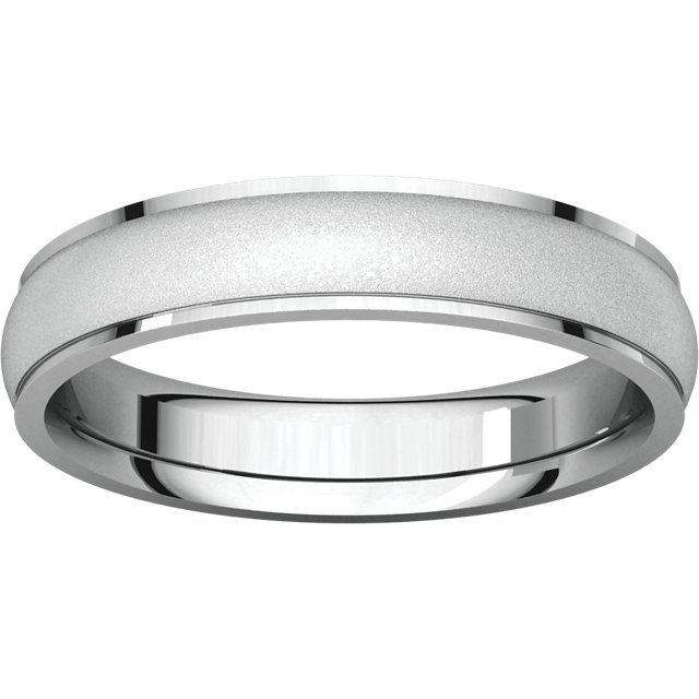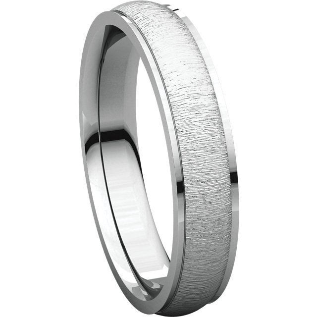 18K White gold center part brushed, 4.0 mm wide plain wedding band. The center of the ring is a satin brush finish and the edges are polished. Different finishes may be selected or specified.