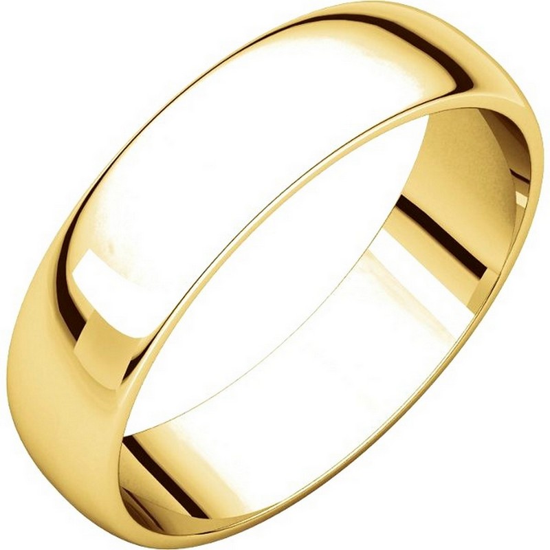 14 kt Gold Plain 5.0 mm Wide Half Round Wedding Band. This is a plain wedding band and is polished. Different finishes may be selected or specified.