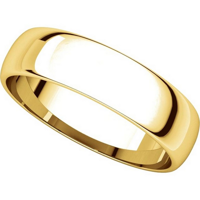 18 kt Gold Plain 5.0 mm Wide Half Round Wedding Band. This is a plain wedding band and is polished. Different finishes may be selected or specified.