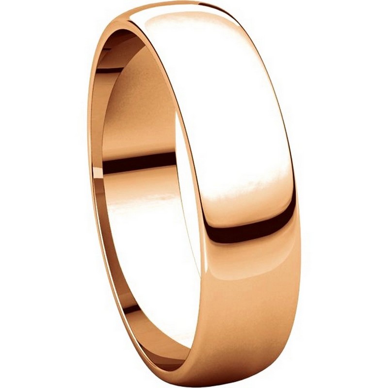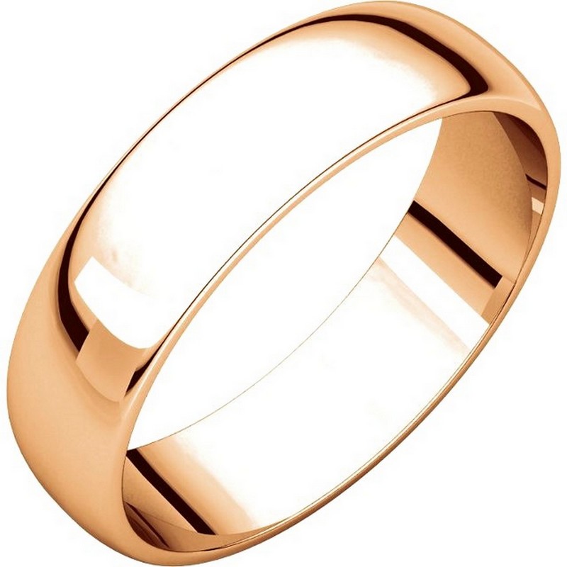 14 kt Rose Rose Gold Plain 5.0 mm Wide Half Round Wedding Band. This is a plain wedding band and is polished. Different finishes may be selected or specified.