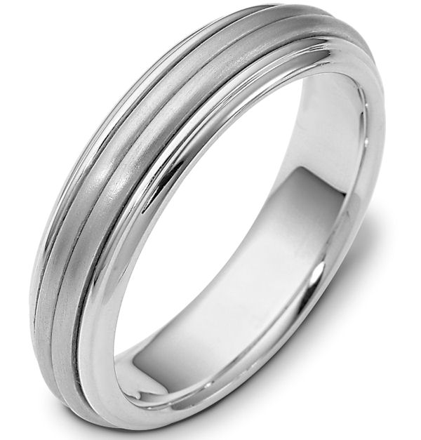 Platinum Center Rotating Hand Made 5.0 mm Wide Comfort Fit Spinning Wedding Band. The center rotating portion has a matte finish and the edges are polished. Different finishes may be selected or specified.