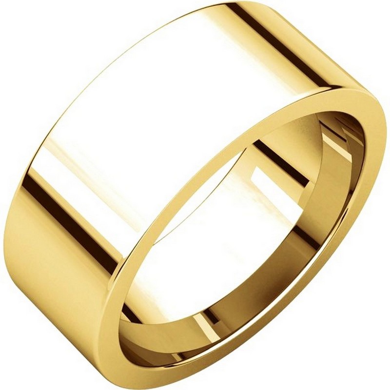 18 kt Gold Plain 8.0 mm Wide Flat Comfort Fit Wedding Band. The ring is completely polished. Different finishes may be selected or specified.