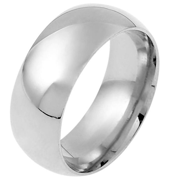 14 kt white gold plain 9.0 mm wide half round, high dome wedding Band. The ring is completely polished. Different finishes may be selected or specified.
