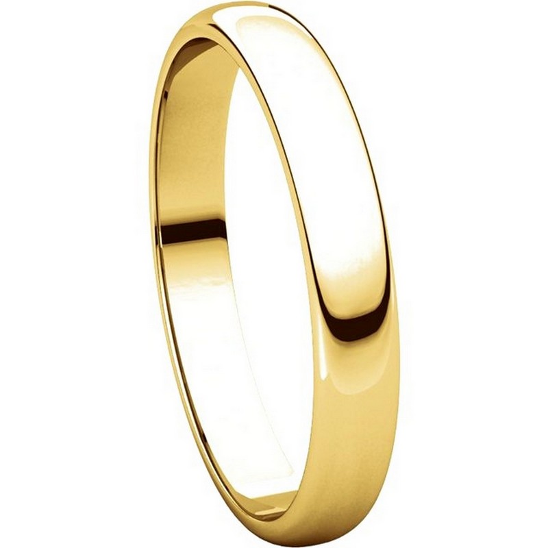 18 kt Gold Plain 3.0 mm Wide Half Round Wedding Band. The ring is completely polished. Different finishes may be selected or specified.