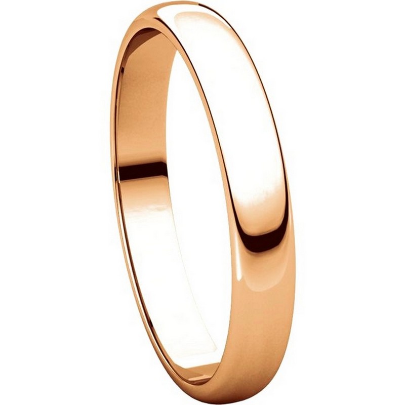 14 kt Rose Gold Plain 3.0 mm Wide Half Round Wedding Band. The ring is completely polished. Different finishes may be selected or specified.