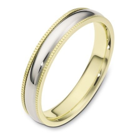 18 kt Gold Two-Tone 4.0 mm Wide Comfort Fit Milgrain Edge Wedding Band. The ring is completely polished. Different finishes may be selected or specified.