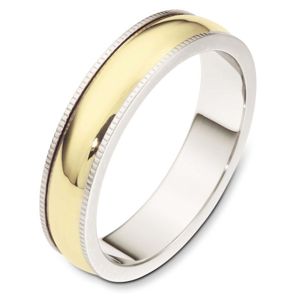 18 kt Gold Two-Tone 5.0 mm Wide Comfort Fit Milgrain Edge Wedding Band. The ring is completely polished. Different finishes may be selected or specified.