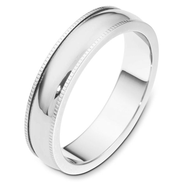 14 kt Gold White Gold 5.0 mm Wide Comfort Fit Milgrain Edge Wedding Band. The ring is completely polished. Different finishes may be selected or specified.