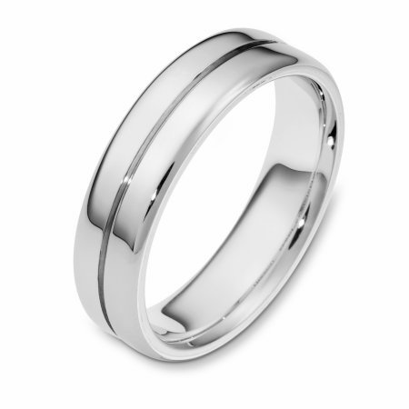 14 kt white gold, Wedding Band 6.0 mm wide. The ring is a polished finish. Different finishes may be selected or specified.