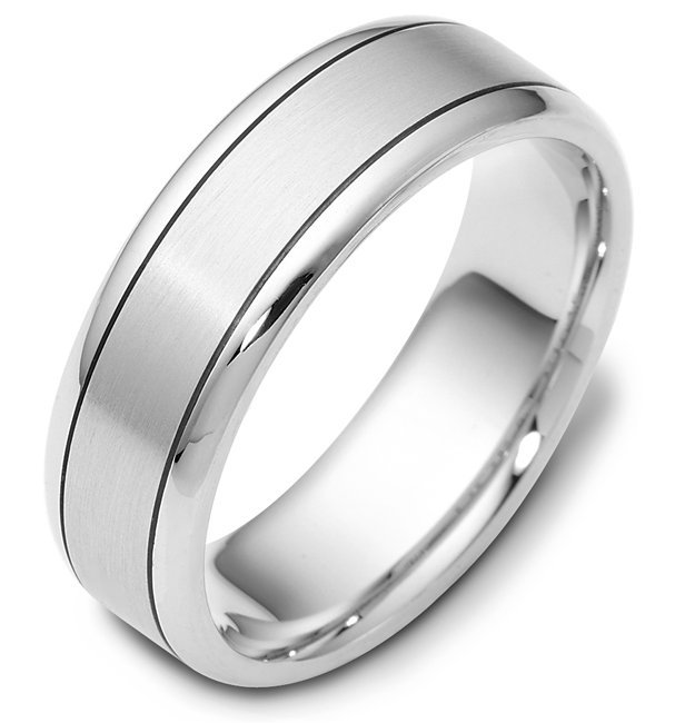 Platinum hand made comfort fit Wedding Band 7.0 mm wide. The center of the ring is a matte finish and the outer edges are polished. Different finishes may be selected or specified.
