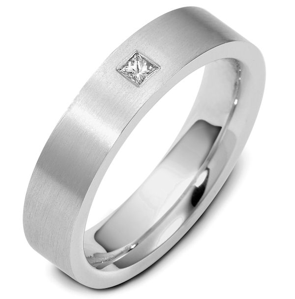 Palladium, comfort fit, 5.5 mm wide, diamond ring. Diamond total weight is 0.10 ct. Diamonds are graded as VS1 in Clarity G in Color