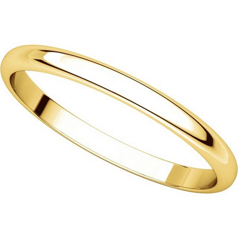 14 kt Gold Plain 2.0 mm Wide Half Round Wedding Band. The whole ring is a polished finish. Different finishes may be selected or specified.