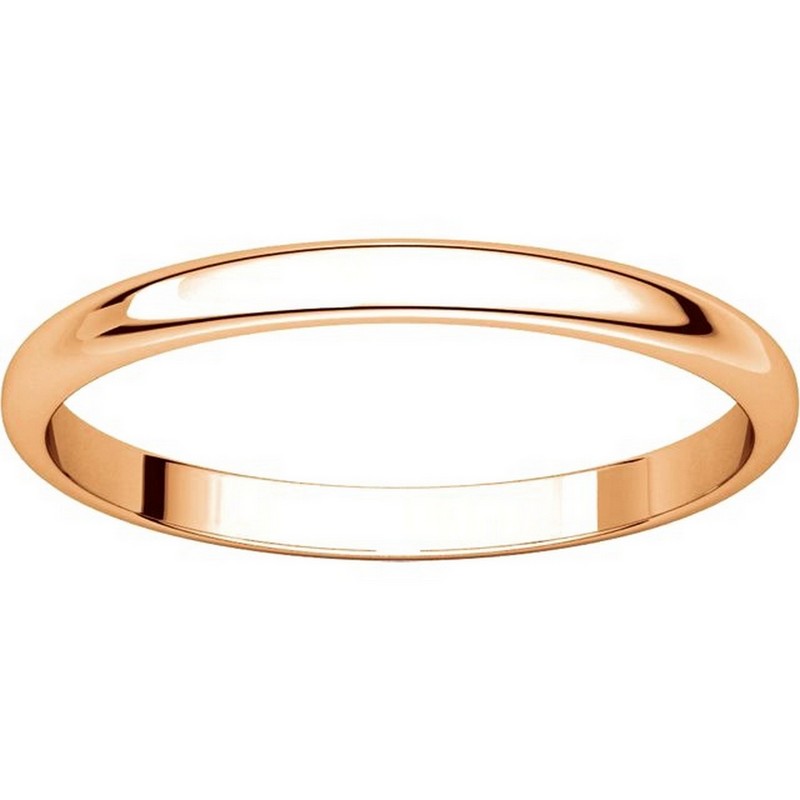 18 kt Rose Gold Plain 2.0 mm Wide Half Round Wedding Band. The whole ring is a polished finish. Different finishes may be selected or specified.