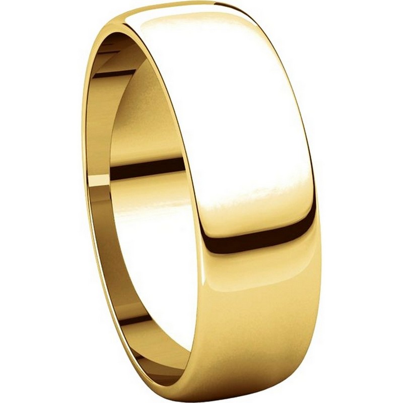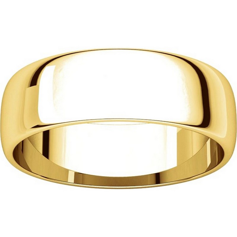 14 kt Gold Plain 6.0 mm Wide Half Round Wedding Band. The whole ring is a polished finish. Different finishes may be selected or specified.