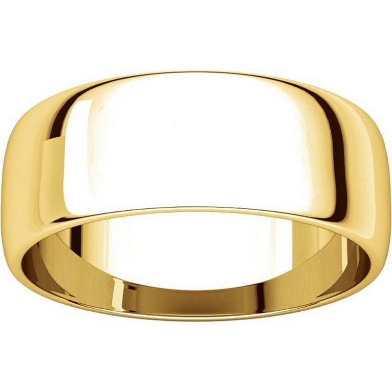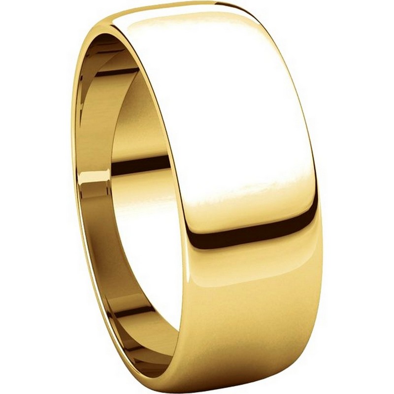 18 kt Gold Plain 7.0 mm Wide Half Round Wedding Band. The whole ring is a polished finish. Different finishes may be selected or specified.