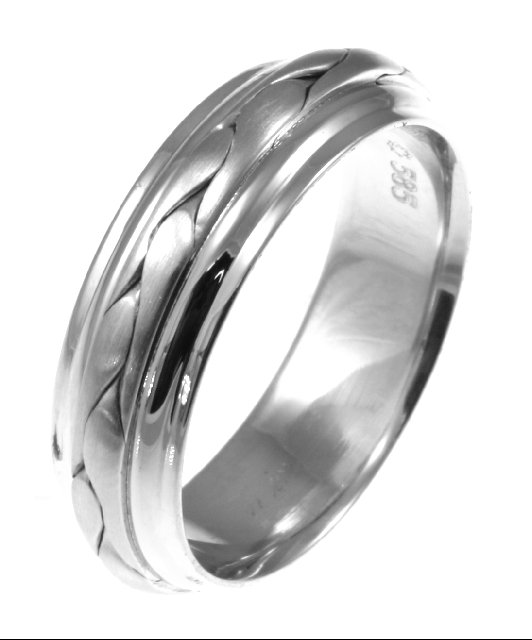 Platinum hand made comfort fit Wedding Band 7.0 mm wide. The braid in the center is handcrafted and is a matte finish. The outer edges are polished. Different finishes may be selected or specified.