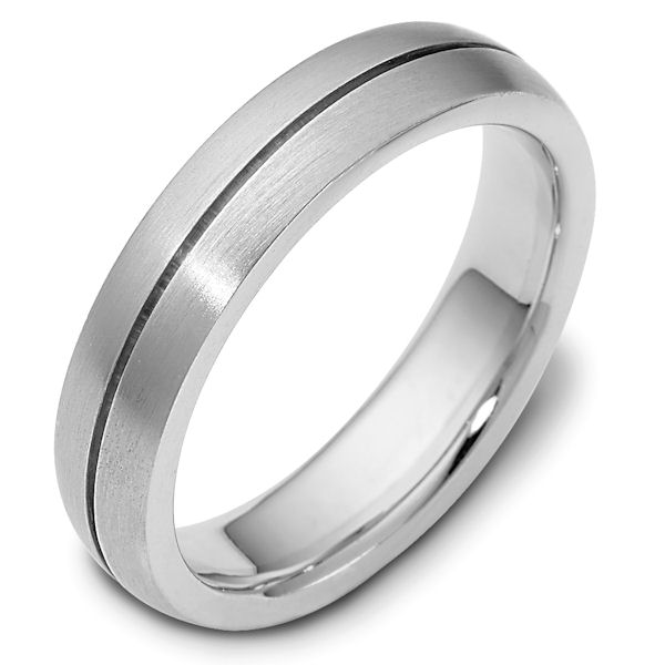 14 kt white gold Wedding Band 6.0 mm wide. The ring is a brush finish. Different finishes may be selected or specified.
