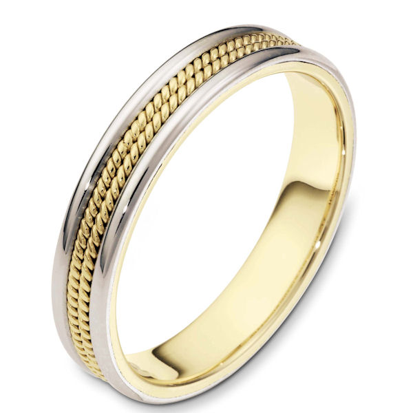18 kt two-tone hand made Wedding Band 4.0 mm wide. There two hand made ropes in the center.The whole ring is a polished finish. Different finishes may be selected or specified.