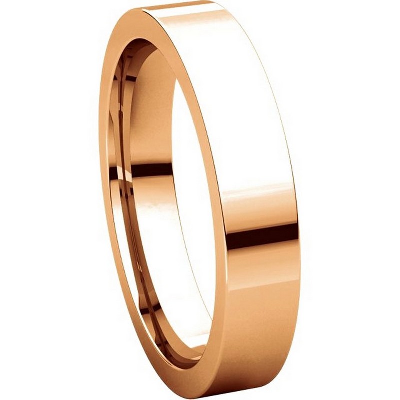 14 kt Rose Gold Plain 4.0 mm Wide Flat Comfort Fit Wedding Band. The whole ring is polished. Different finishes may be selected or specified.