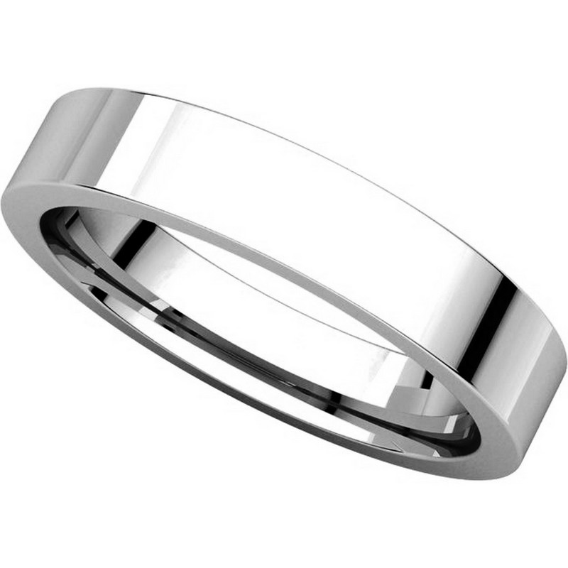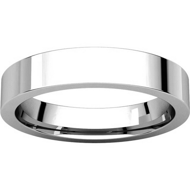 18 kt white gold Plain 4.0 mm Wide Flat Comfort Fit Wedding Band. The whole ring is polished. Different finishes may be selected or specified.