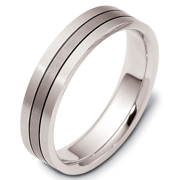 14 kt white gold and titanium, 5.0 mm Wide Comfort fit, Wedding Band. The ring is a matte finish. Different finishes may be selected or specified.