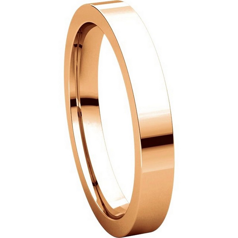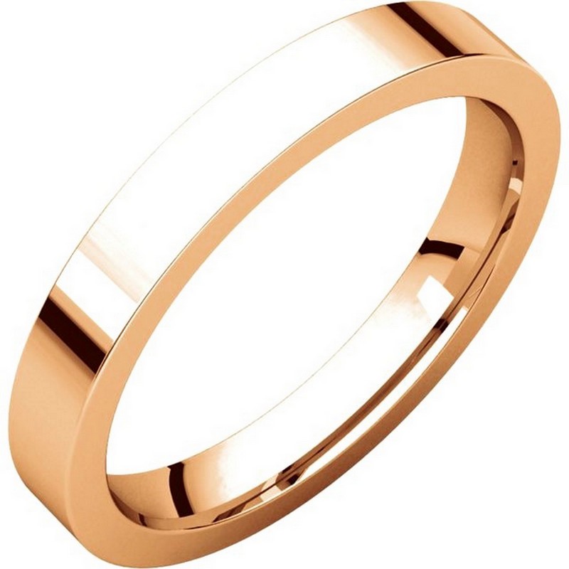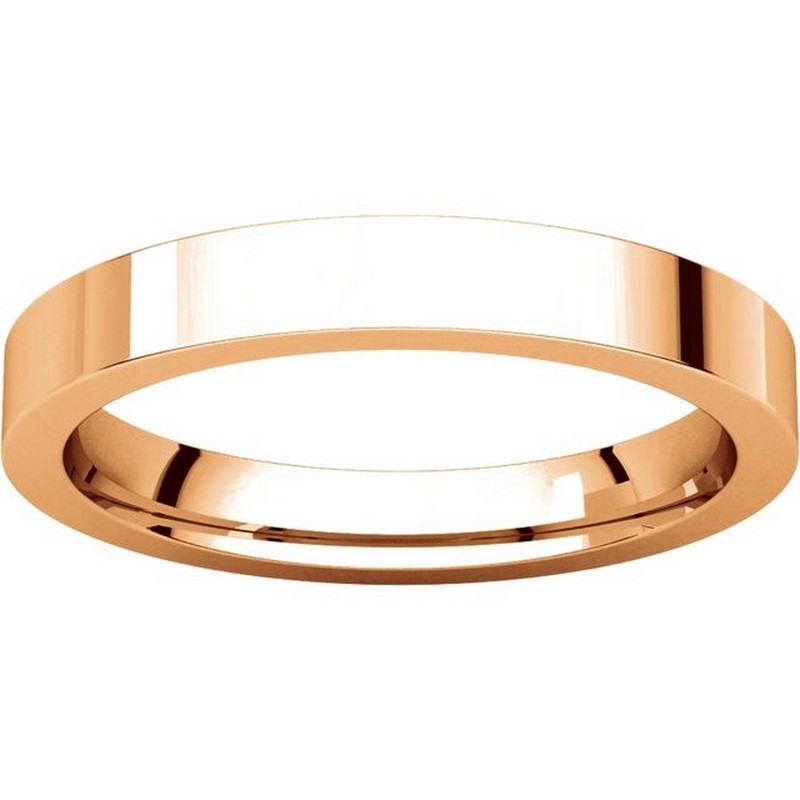 18 kt Rose Gold Plain 3.0 mm Wide Flat Comfort Fit Wedding Band. The ring is a polished finish. Different finishes may be selected or specified.