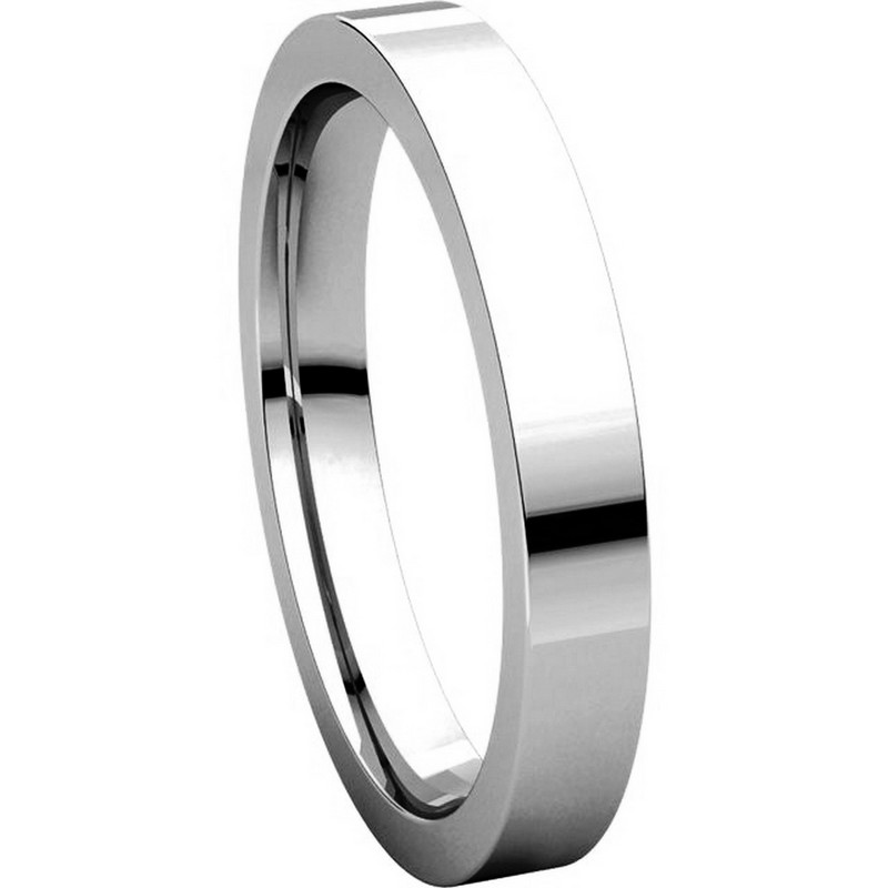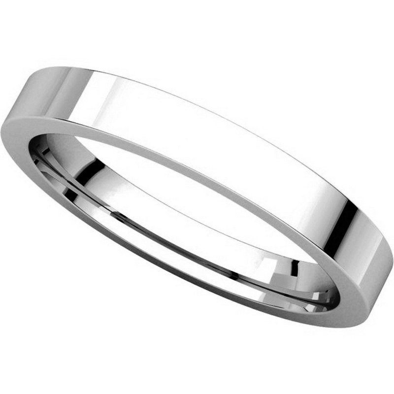 14 kt White Gold Plain 3.0 mm wide flat comfort fit wedding band. The ring is a polished finish. Different finishes may be selected or specified.