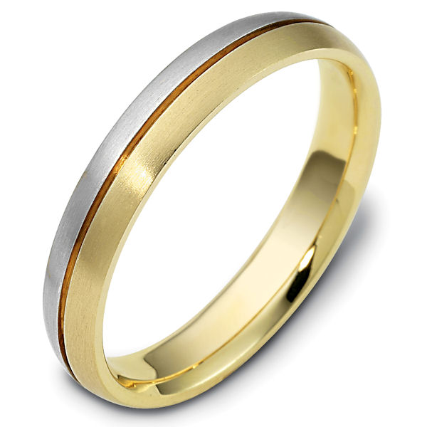 18kt Two-tone gold classic, comfort fit, 4.0mm wide wedding band. The ring is all brushed finish. Different finishes may be selected or specified.