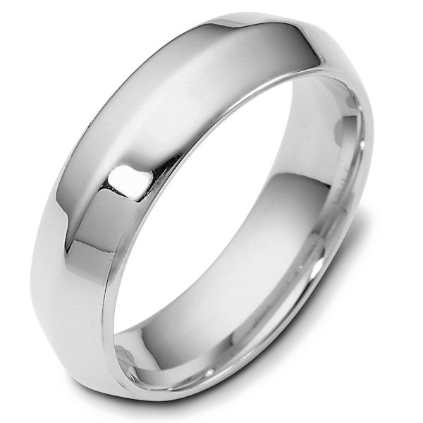 18kt White gold modern contemporary, comfort fit, 6.0mm wide wedding band. The ring has a polished finish. Different finishes may be selected or specified.