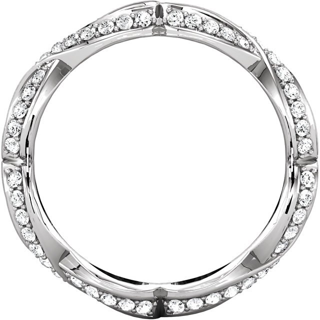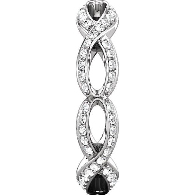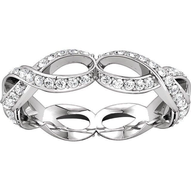 Platinum infinity inspired eternity ring. The eternity ring holds channel set 0.68ct diamonds graded as VS in clarity G-H in color. The eternity band is matching 127641APP.