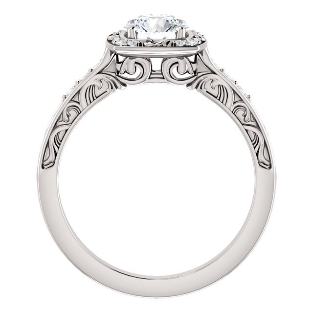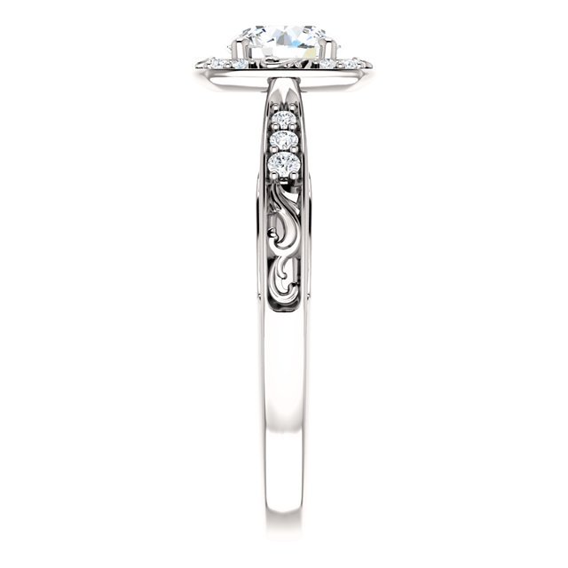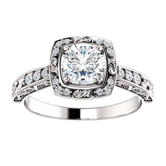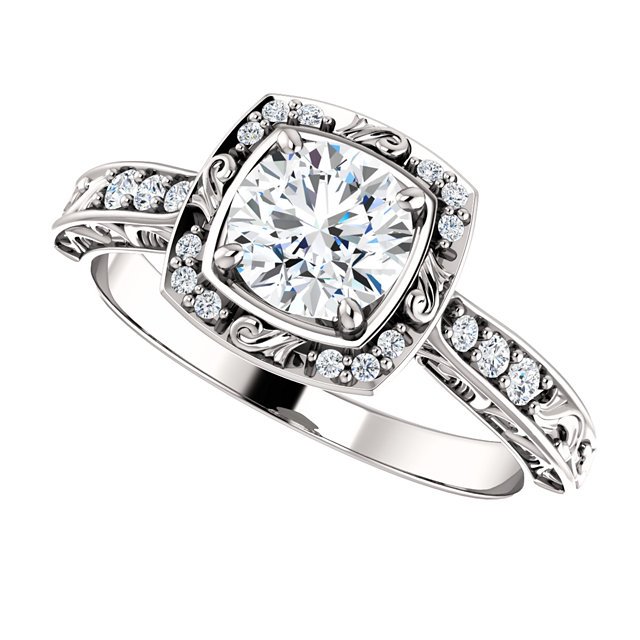 18K white gold diamond engagement ring. The ring holds 18 round brilliant cut diamonds with total weight of 1/6ct. In the center the ring holds one round brilliant ideal cut diamond that weighs 3/4 ct and certified by GIA as SI1 in Clarity G in color. The ring can be made to different size diamonds.